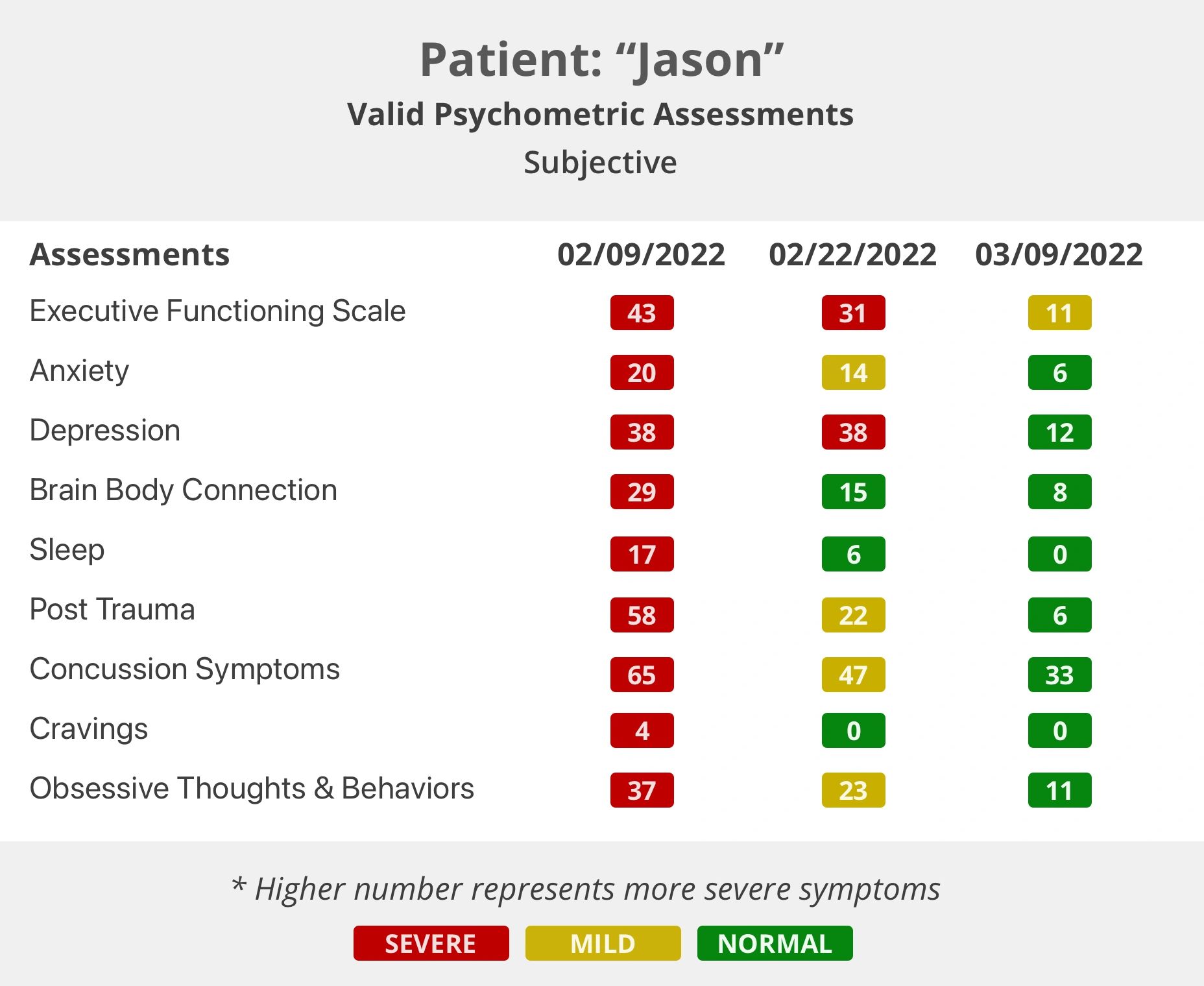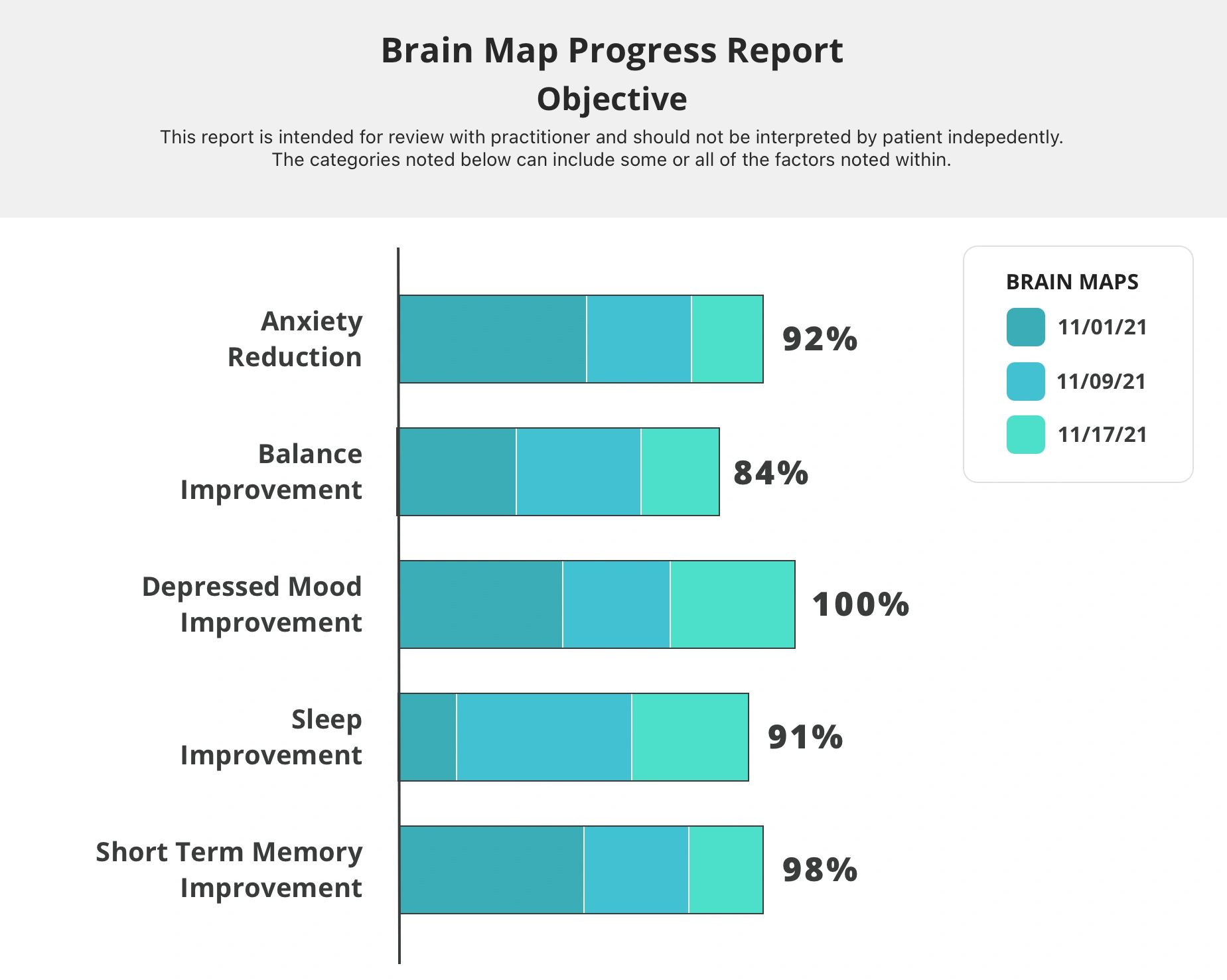 Brain Frequency™ has shown a decrease in over 70% of symptoms for executive functioning anxiety, depression, sleep disorder and concussion during a 4 year period. Psychometric Assessment scores over an 8- week period has indicated a reduction of prescription drug use and in-patient treatment center remission.